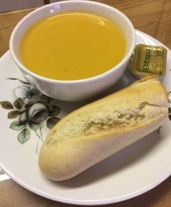 Homemade soup of the day with warm baguette