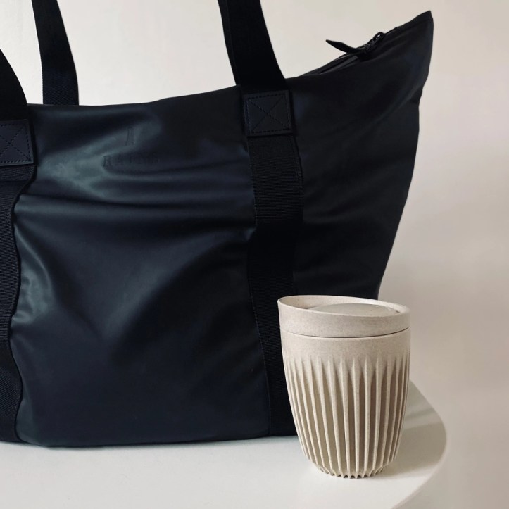 Coffee & Carry Gift Set at £55 from Hawwl Store – for every day, a large waterproof tote bag by Rains is a classic, along with a coffee keep cup. Ideal for school run, dog walk, a pit stop at the park or morning routine! The tote bag is also available in Olive.